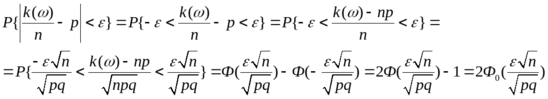 , причем MXi=p и DXi=pq. Отсюда и вытекает утверждение теоремы(ссылка на следствие из теоремы Чебышева: