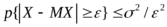 Второе неравенство Чебышева. Для каждой случайной величины X, имеющей дисперсию DX=2, при любом >0 справедливо:
