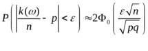 Интегральная теорема Муавра-Лапласа. Обозначим Sn суммарное число успехов в n испытаниях по схеме Бернулли с вероятностью успеха p и вероятностью неудачи q=1-p. Тогда с ростом n последовательность функций распределения случайных величин