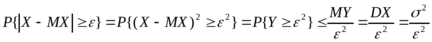 Доказательство. Воспользуемся первым неравенством Чебышева. Применяя к случайной величине Y=(X-MX)2 это неравенство, в котором заменено на 2, получаем:
