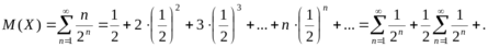 Пример 2. Определим математическое ожидание случайной величины Х – числа бросков монеты до первого появления герба. Эта величина может принимать бесконечное число значений (множество возможных значений есть множество натуральных чисел). Ряд ее распределения имеет вид: