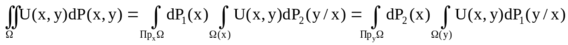 Понятно, что левая часть равенств (3.2) определяет в общем случае математическое ожидание случайной величины U(х,у), определенной на подмножестве некоторого конечномерного пространства, а правые части определяют два возможных представления математического ожидания в виде повторных интегралов. Внутренние интегралы в каждом из повторных интегралов в (3.2) определяют условные математические ожидания. Аналогичным образом строятся повторные интегралы на произведении более чем двух пространств.