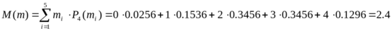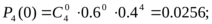 Задача 6. Произведено 4 выстрела с постоянной вероятностью попадания равной 0.6.