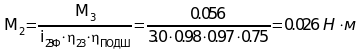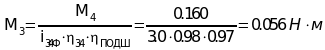 При расчете момента на втором валу учтём КПД порошковой муфты: