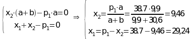 Найдем неизвестные реакции x1, x2, y1, y2, используя законы равновесия для моментов и сил: