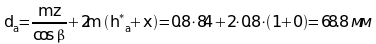 Диаметр вершин зубьев: