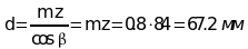 β - угол наклона зубьев, β = 0, т.к. колеса прямозубые.