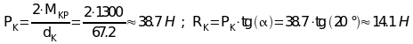 Рассчитаем силы, действущие на вал, по формулам:
