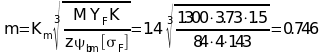Модуль зацепеления следует определить по ведомому колесу, т.к. материалы шестерен и колес разные и для колеса отношение