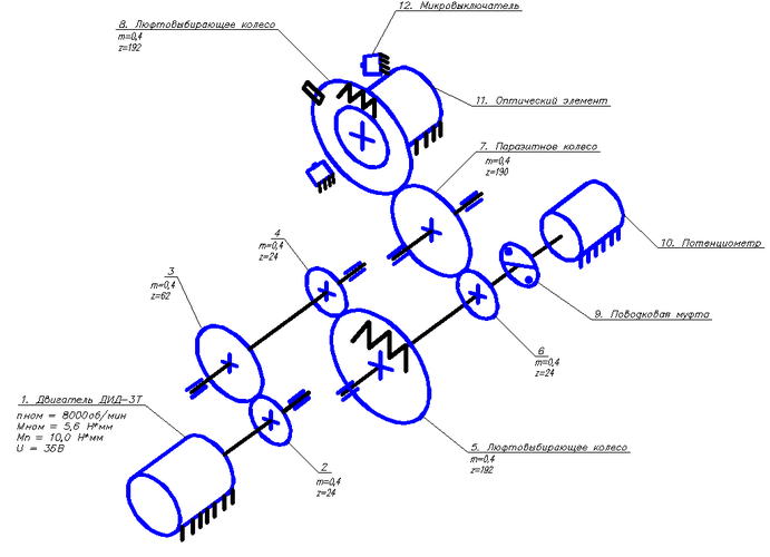 Рис. 3 Кинематическая схема проектируемого устройства.