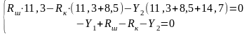 Для определения неизвестных реакций X1, X2, Y1, Y2 составим системы уравнений равновесия вала: