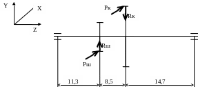 Рис. 5 Проекции сил, приложенных к валу №3 на плоскость ZX