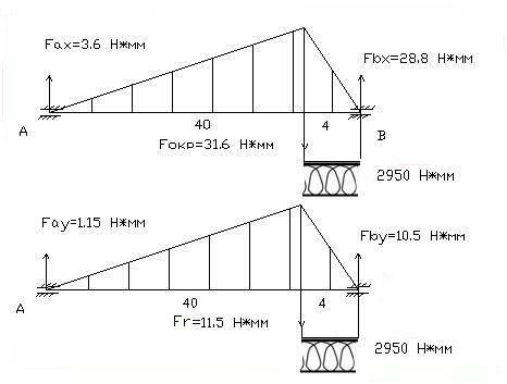 Рис. 5 Расчётная схема нагрузки на цапфу вала