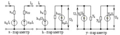 Схемы на базе систем параметров четырехполюсника - каждая схема включает два сопротивления или проводимости и два эквивалентных генератора (напряжения и тока).