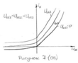 При UКБ1 = 0 входная характеристика представляет собой обычную ВАХ прямосмещенного p-n перехода. При UКБ ≠ 0: когда UЭБ = 0. т.е. ЕЭ = 0 имеем следующие процессы. В выходной цепи существует ток. Неосновные носители заряда проходя через узкую и достаточно длинную n-область создают разность потенциалов, который обеспечивает начальный ток эмиттера, т.е. при UКБ2 ≠ 0 происходит смещение ВАХ вверх по оси токов. С увеличением UКБ смещение будет увеличиваться, т.к. будет возрастать начальный ток эмиттера.