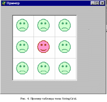 Заметим, что если значение свойства DefoultDrawing имеет значение true, то вначале в верхней части таблице прорисовывается текст, заданный свойством Cell, а затем вызывается обработчик события OnDrawCell, если этот обработчик назначен. Как правило, обработчик помещает в ячейку изображение, определяемое свойством Object. Если свойство DefoultDrawing имеет значение false, то отображение ячейки полностью определяется обработчиком события OnDrawCell.