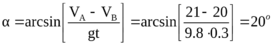 Для момента τ, когда точка покидает участок AB, , то есть имеет место равенство . Отсюда искомый угол равен: