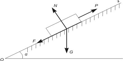 Телу массой m сообщена начальная скорость v0, направленная вверх по наклонной плоскости, составляющей угол α с горизонтом (рис. Д5.1). На тело действует сила P, направленная в ту же сторону. Зная закон изменения силы P = P(t) и коэффициент f, определить скорость тела в моменты времени t1, t2, t3. Проверить полученный результат для момента времени t1 с помощью дифференциального уравнения движения.