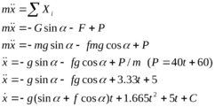 Дано: m=12кг, v0=3м/с, t1=3с, t2=8с, t3=14с, P0=60Н, P1=180Н, P2=120Н, P3=120Н, α=420, f =0,15