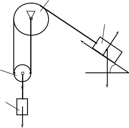 В задании приняты следующие обозначения: m1, m2, m3, m4 – массы тел 1, 2, 3, 4; - угол наклона плоскости к горизонту; f – коэффициент трения скольжения.