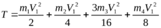 Кинетическая энергия рассматриваемой системы Т в конечном ее положении (рис.2) равна сумме кинетических энергий тел 1, 2, 3 и 4: