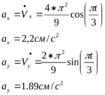 -это проекции ускорения на координатные оси. Найдем их дифференцируя по времени уравнения движения: