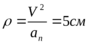 После того как найдено нормальное ускорение, радиус кривизны траектории в рассматриваемой точке определим из выражения: