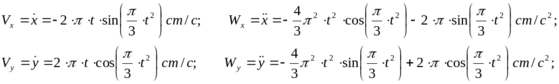 Найдем проекции скорости и ускорения на оси координат дифференцируя по времени уравнения движения: