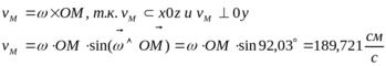 Скорость точки М определяем как вращательную относительно мгновенной оси:
