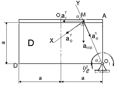 Абсолютное ускорение точки М равно геометрической сумме относительного, переносного и кориолисова ускорений.