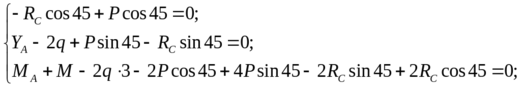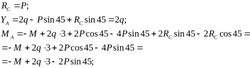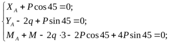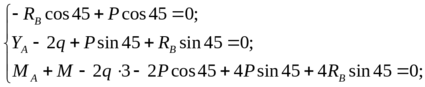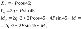 Решение: Видим, что, поскольку имеется только одна опора, каждое уравнение статики будет давать одну реакцию.