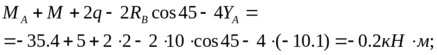 Выполним проверку решения, вычислив момент сил относительно точки приложения силы