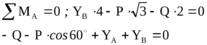 Р = 10 кН, q = 4 кН/м, исследуемая реакция YA