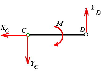 Решаем систему уравнений и получаем (в кН) Xc=0, Yc=6.66, Xa=0.5, Ya=10.03, Yb=0.364, Yd=6.667.