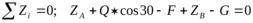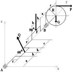Из этих сил пять неизвестных. Для их определения можно составить пять уравнений равновесия.