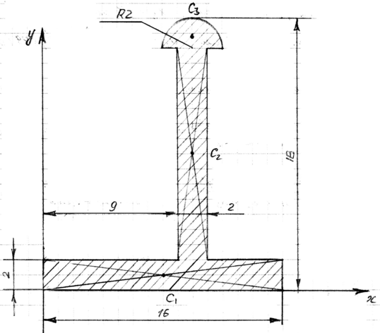 III фигура – полукруг (рис. C8.1 – центр тяжести – С3)