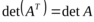 1). Определитель матрицы не меняется при транспонировании, то есть