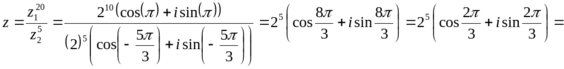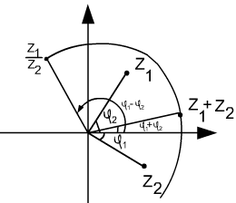 Используя тригонометрическую форму записи легко вычислить производное и частное: