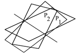 Пересечение трех плоскостей в одной.