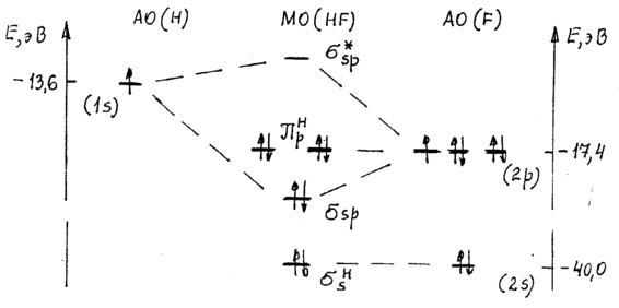 Рис.2. Энергетическая диаграмма молекулы фтора водорода HF.