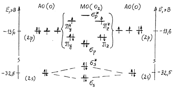 Рис.1. Энергетическая диаграмма молекулы кислорода О2.