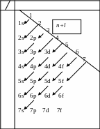 Электроны размещаются последовательно на орбиталях, характеризуемых возрастанием суммы главного и орбитального квантовых чисел (n+l); при одинаковых значениях этой суммы раньше заполняется орбиталь с меньшим значением главного квантового числа n
