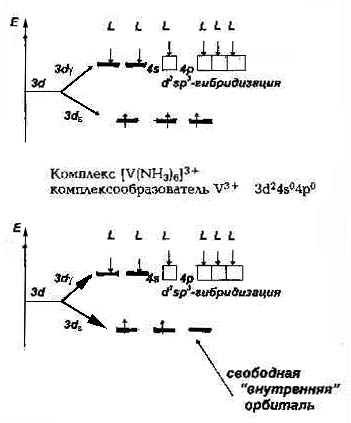 Реакционная способность комплекса V(NH3)63+ выше, чем у Cr(NH3)63+ из-за наличия свободной «внутренней» d-орбитали: