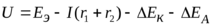 В работающем ГЭ при прохождении тока I напряжение U меньше ЭДС из-за явления поляризации катода (EК) и анода (ЕА) и омического падения напряжения на сопротивлении r1 в проводниках с электронной проводимостью (проводниках первого рода) и на сопротивлении r2 в электролите (проводнике второго рода)