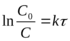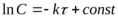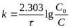 Постоянная интегрирования может быть определена из начальных условий: при = 0 С = С0 и ln C = ln С0; С0 – исходная концентрация.