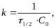 Период полураспада для реакции второго порядка найден из (1.20). Подставив C = ½ C0,