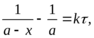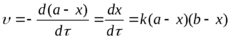 Пусть a и b – начальные концентрации C0 вещества A и B, а x – число молей в 1 л, которое прореагировало за время τ. Тогда