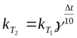 Считая γ приблизительно постоянным в интервале температур T2 – T1 , можно рассчитать kT2, зная величину kT1: