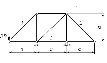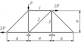 | Определить усилия в стержнях 1, 2,3. | |||