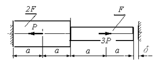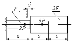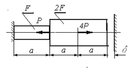 | . Определить параметр площади сечения F из условия, чтобы при заданной нагрузке перекрыть зазор δ = 0.02a. E = const. | |||